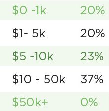 En la encuesta de 2013 el 10% de los encuestados dijo que su empresa había invertido más de 50.000 dólares al mes en linkbuilding. Este año no se alcanzan cifras tan altas y la mayor parte de los encuestados (un 37%) aseguran que invierten entre 10.000 y 50.000 dólares al mes (lo que serían entre 7.500 y 37.500 euros al mes aproximadamente).