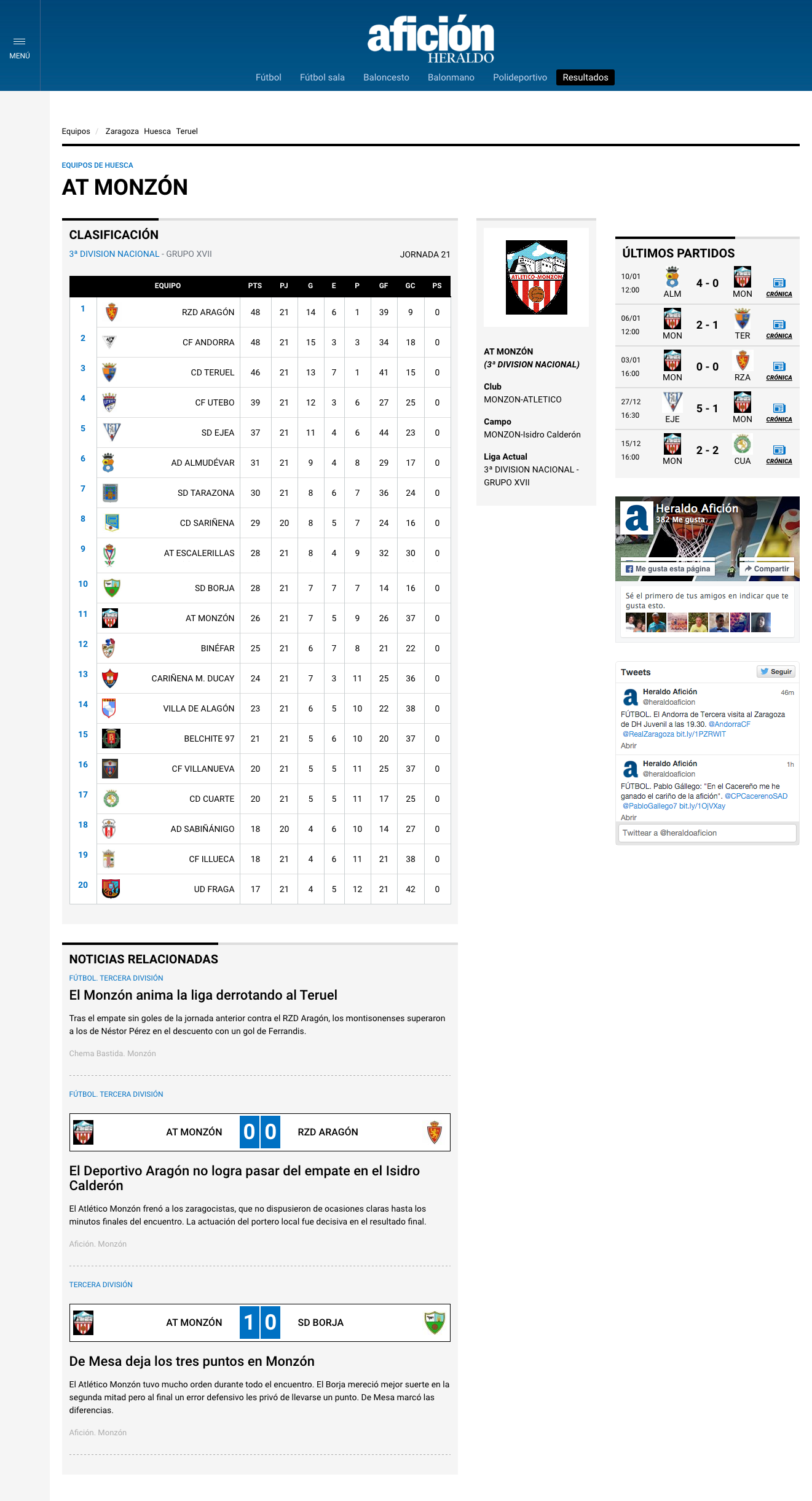 El Heraldo de Aragón lanza la versión online del suplemento deportivo “Afición” ofreciendo a los seguidores del deporte base todos los resultados oficiales desde cualquier dispositivo.