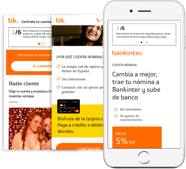 - Mejorar los ratios de conversión (Inicio de proceso de contratación) de la Cuenta Nómina mediante test A/B en páginas concretas, como por ejemplo: Hazte cliente, páginas de producto y landing pages.